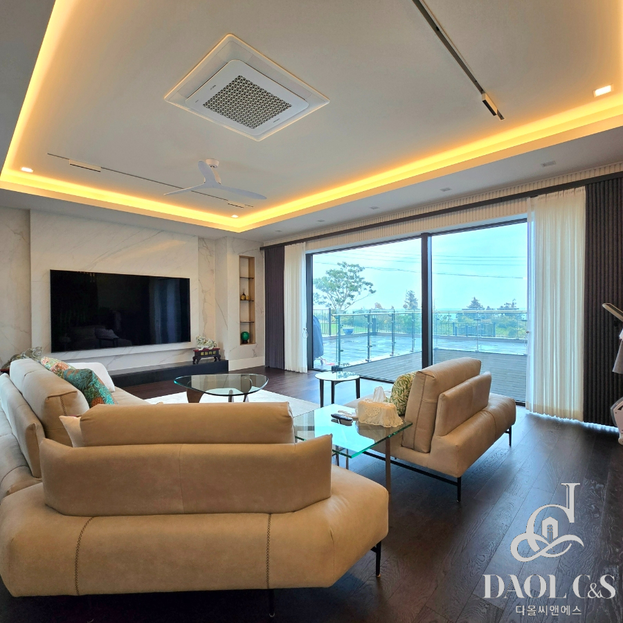 시스템에어컨, 냉장고, 냉동고, 김치냉장고, 와인셀러, TV 7대, 인덕션, 오븐, 식기세척기, 세탁기, 건조기 등등...