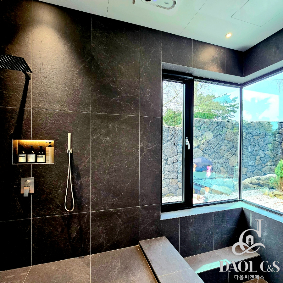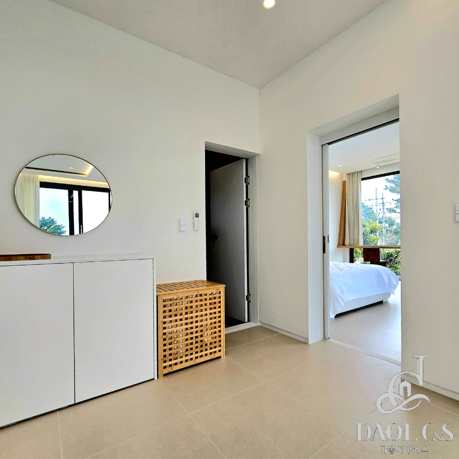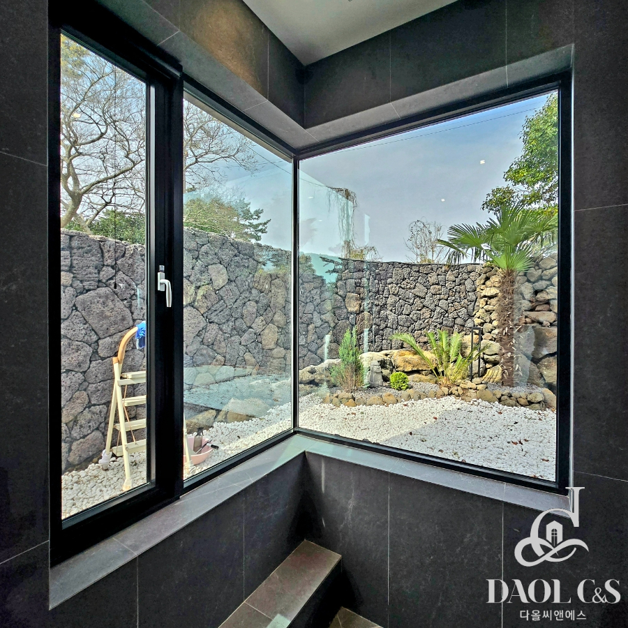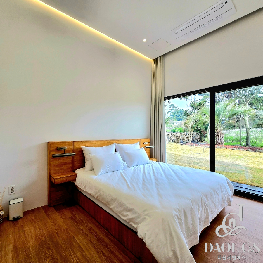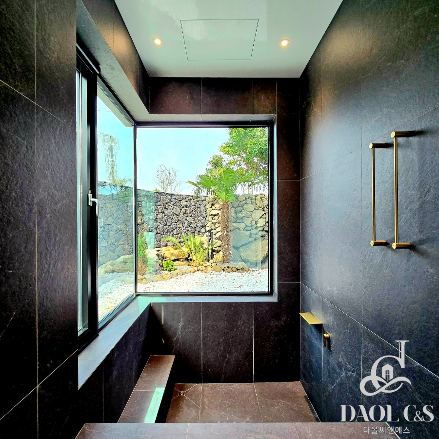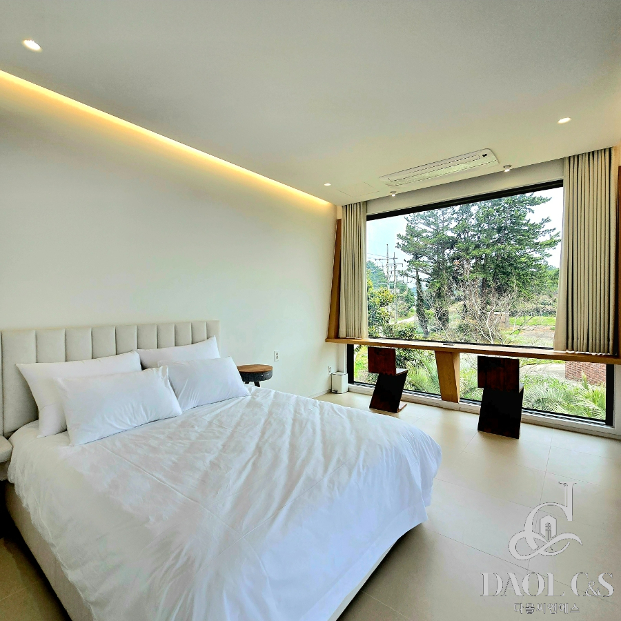 건축주의 정성이 깃든 잘 조성된 정원은 제주스러움을 만끽할 수 있는 야자수와 제주석이 자연스럽게 조화를 이뤄 완성된 제주 애월읍 고급단독주택입니다.