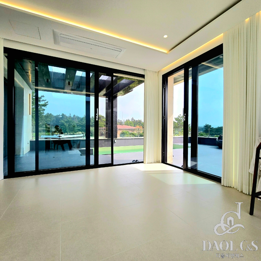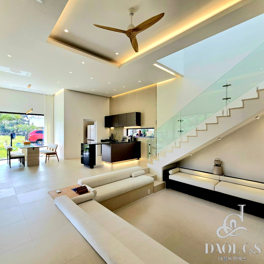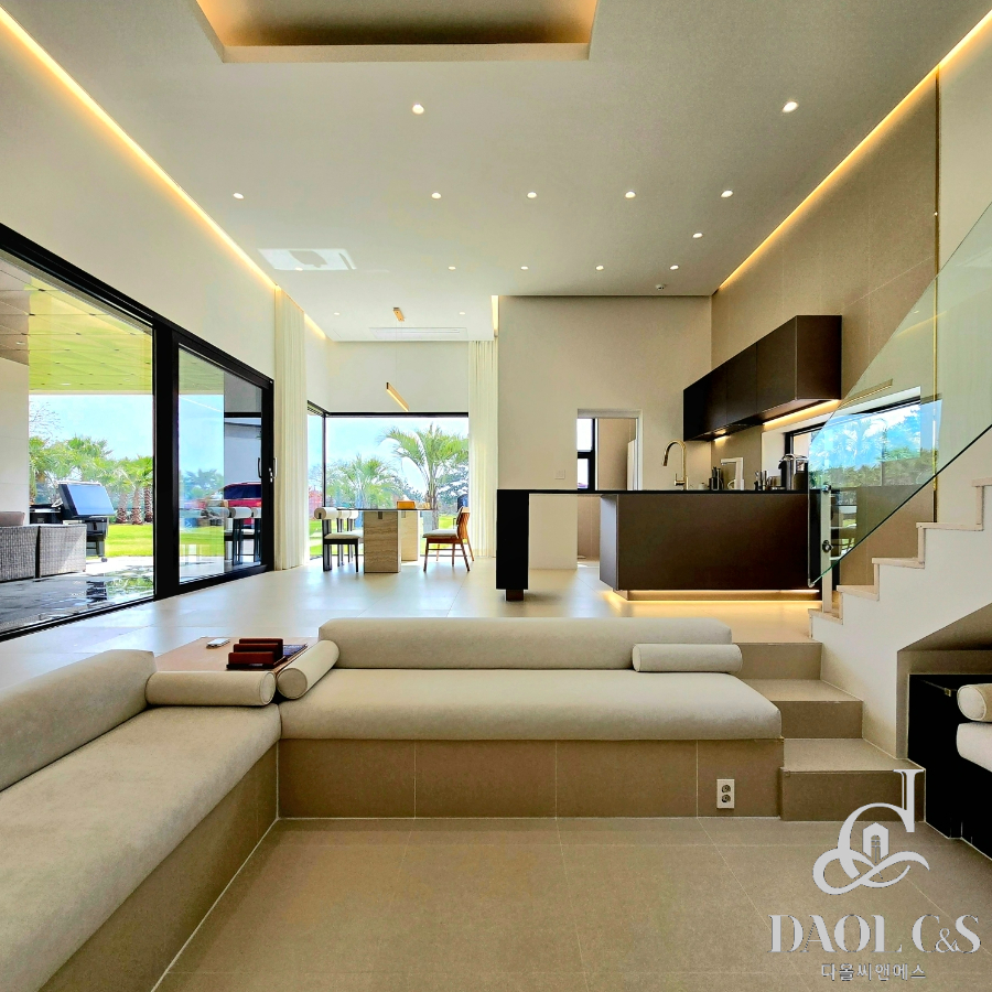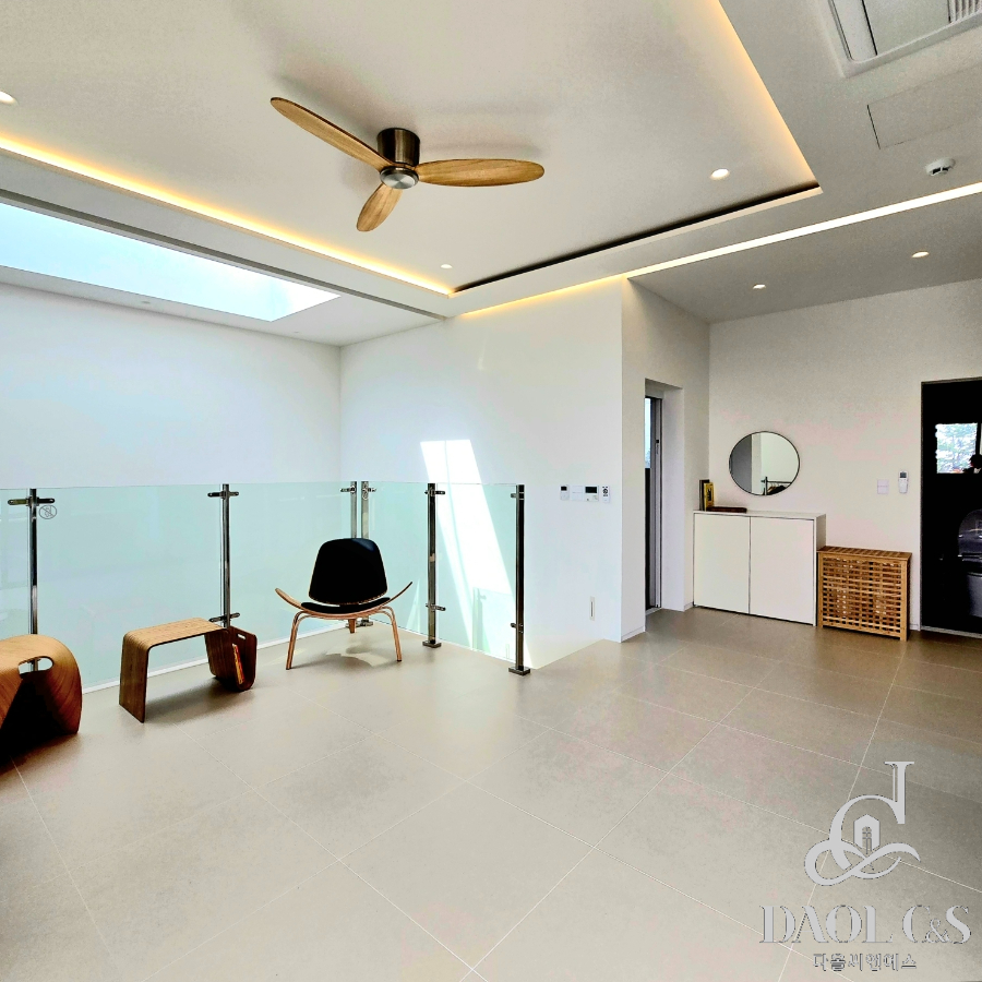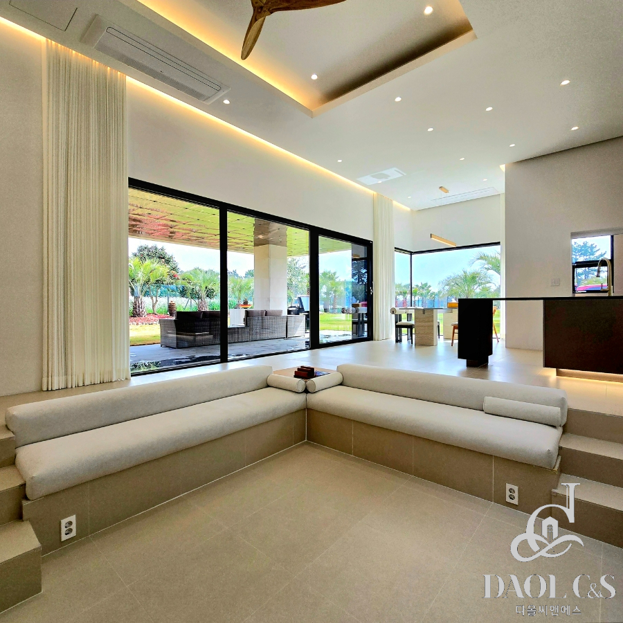 전체 대지면적 700여평에 골프장을 연상케하는 잘 관리된 잔디와 정원을 포함하고 있으며, 특화된 내부 구조 또한 이면 개방형 통창시공으로 개방감있는 모습을 보여주고 있습니다.