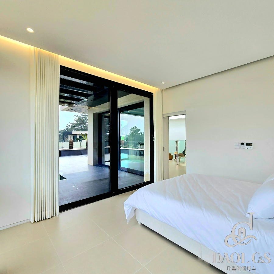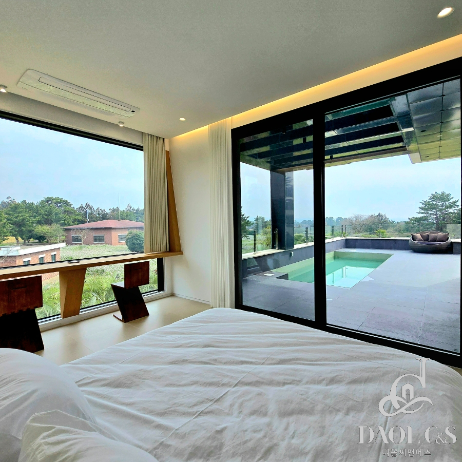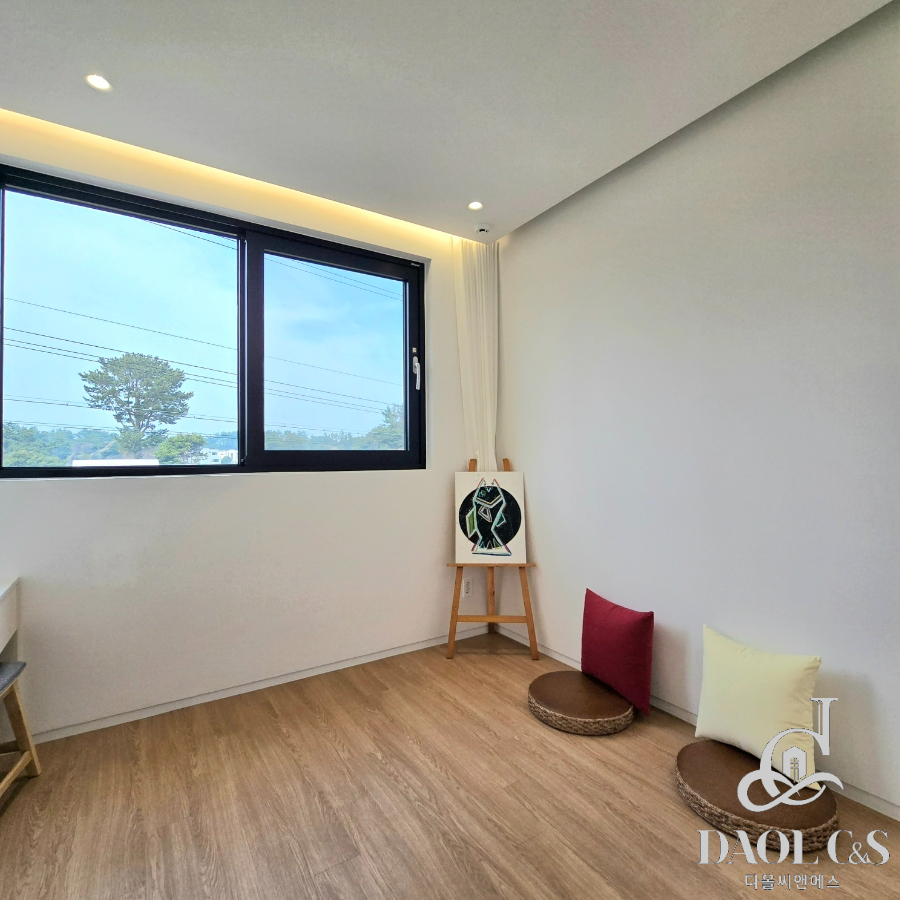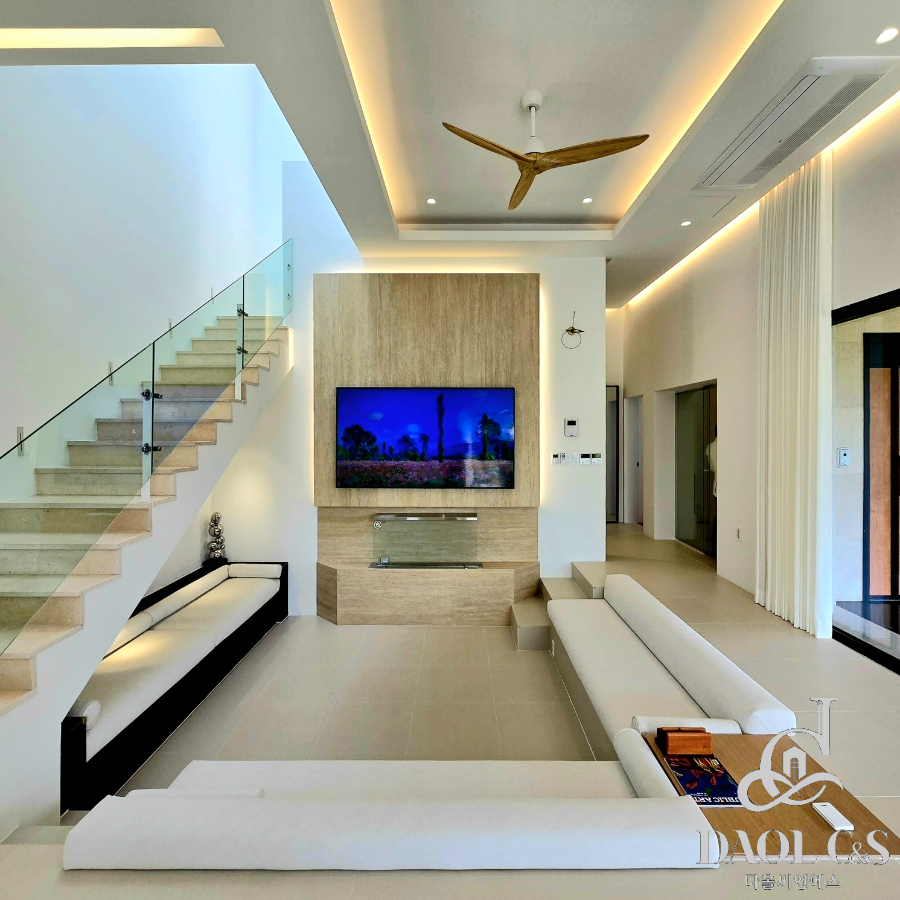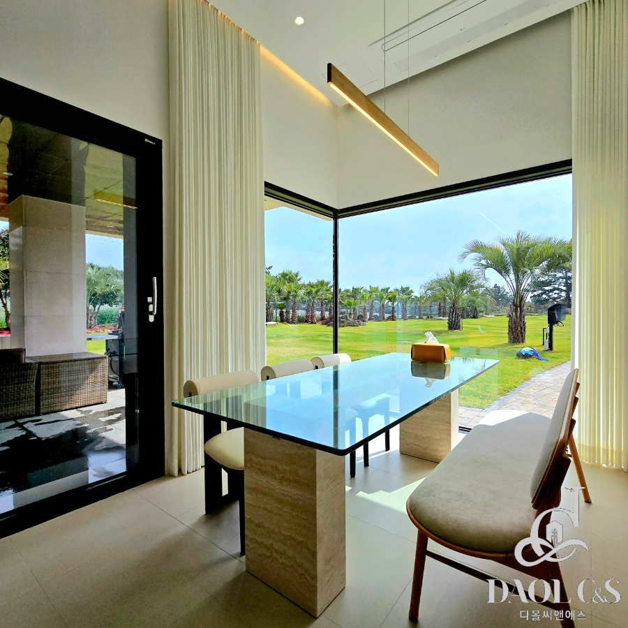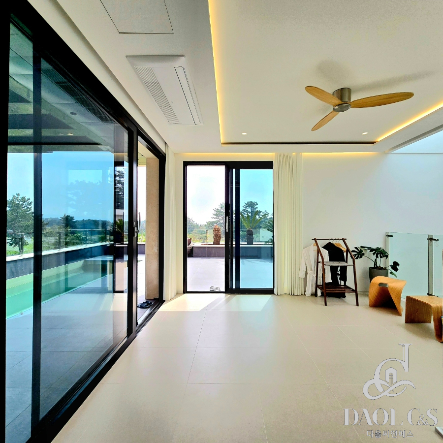 전체 대지면적 700여평에 골프장을 연상케하는 잘 관리된 잔디와 정원을 포함하고 있으며, 특화된 내부 구조 또한 이면 개방형 통창시공으로 개방감있는 모습을 보여주고 있습니다.