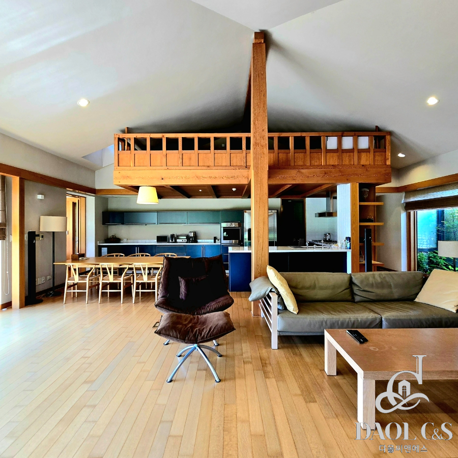 내부구조방3, 욕실2, 거실, 주방, 다락, 정원, 야외노천탕