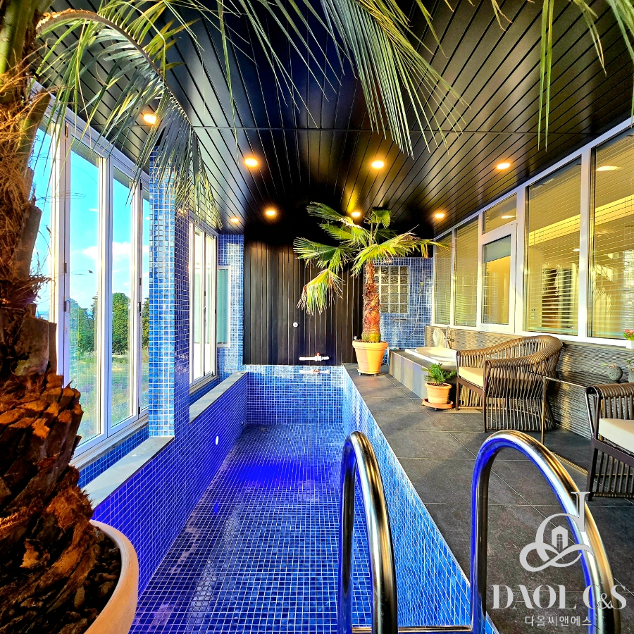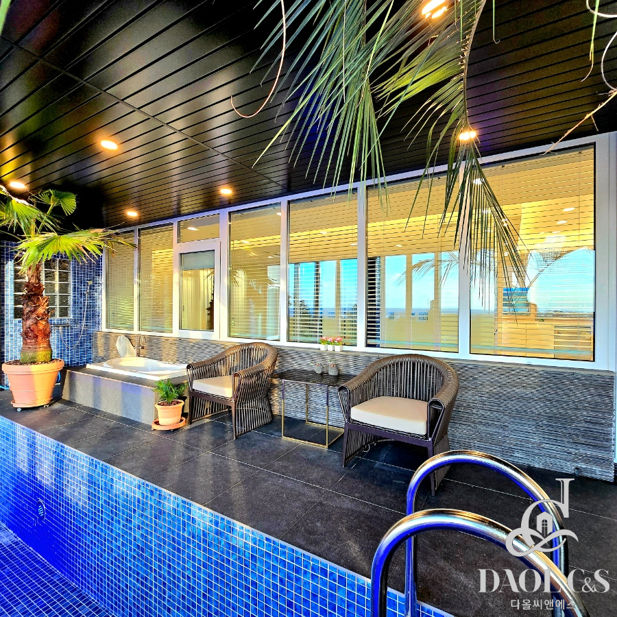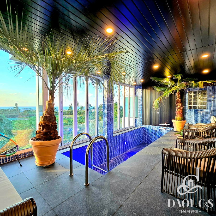 실내에 14평의 프라이빗한 수영장과 층간 이동의 편리함을 위해 엘리베이터가 설치되어 있으며, 내부 어디에서나 제주의 한라산과 바다조망을 갖춘 주택으로 초기 분양가 23억에서 조정된 18억에 분양중에 있습니다.